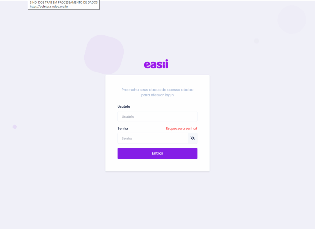 Assim que receber os dados de acesso, acesse o endereço https://app.easii.com.br e preencha os campos com os dados de acesso recebidos por e-mail.