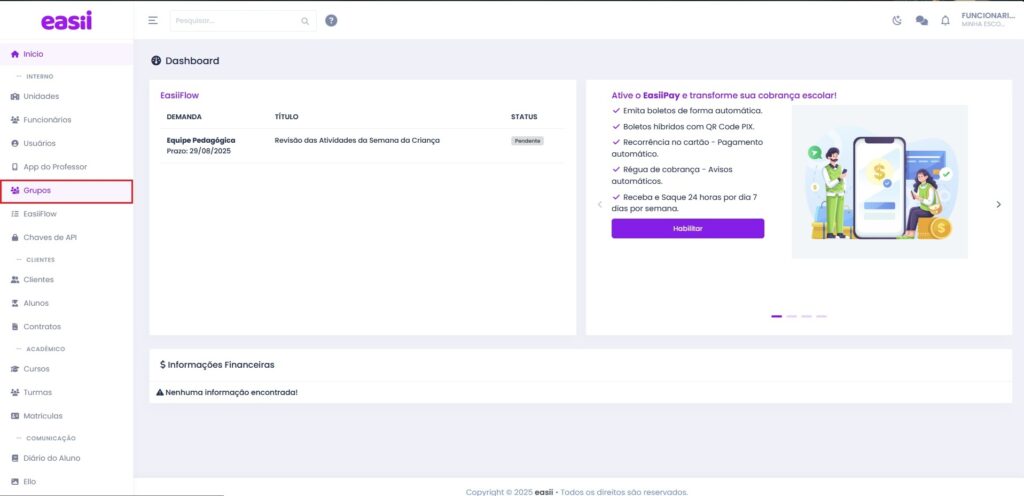 Enfim, o Cadastro de Grupos é o primeiro passo pra deixar tudo no modo Easii: organizado, prático e sem dor de cabeça. Porque aqui, comunicação flui e bagunça… só se for no recreio!