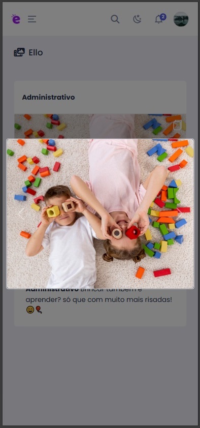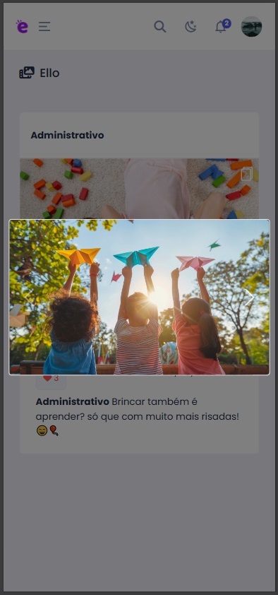 Além da equipe administrativa, os professores também podem criar publicações na tela Ello — e o melhor: diretamente pelo aplicativo do professor! Ou seja, dá pra registrar aquele momento especial logo após a atividade, sem precisar ir até um computador.
